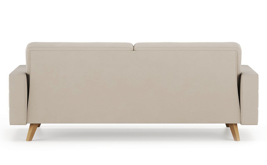 Диван Лакк выполнен в скандинавском стиле: лаконичные формы, опоры из натурального дерева, аккуратные утяжки на спинке и подлокотниках.